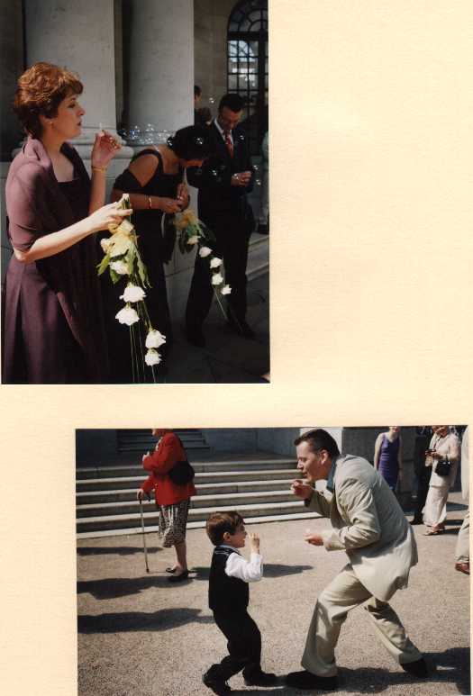 Top: Sharon blowing bubbles... Bottom: Bill Roberts (who incidentally is a mate from my days at Prospero) fights my godson David James Lowe with the bubbles.