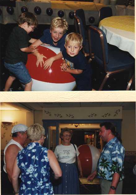 Bottom: The evening do has started - Dave greets some of the more outrageiously dressed. (His Mother, Uncle John and the Reverend Judy Harris)
