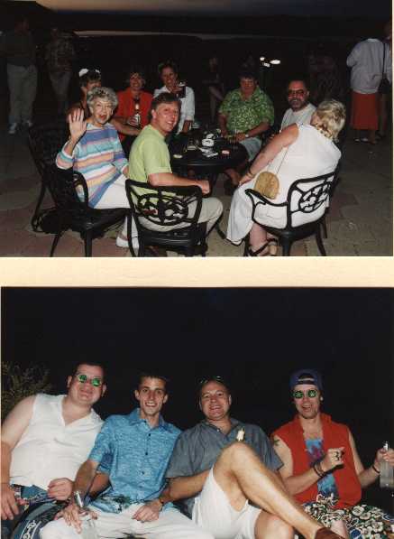 Top: Various members of the Stow family hang out on the patio - the sun's going down and the evening's looking like its going to be great