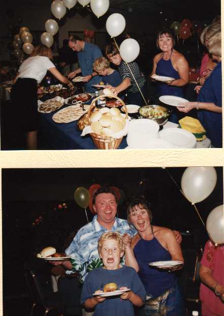 Top: The evening buffet is here! Ann looks pleased. Dave has already been round once…