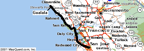 afternoon/evening. San Jose to Gualala...