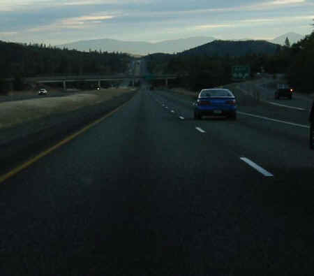 Ann and Dave drive a bit further until they reach a nice looking town, which has hotels. So -they stop at... wait for it.... Weed. Seriously - the place is called "Weed". There is a local college and apparently a fun thing to do is to have your photo taken under a sign that points to Weed in one direction and College in the other with a kind of "decisions, decisions" look on your face... So we're told by a faintly reliable source. Having secured a hotel room Ann and Dave get dinner at the local diner, meet a couple of guys who've been fishing and landed a huge fish and eat steak. Its been a long drive - we've covered 500 miles and driven from Seattle right down through Oregon into California. Our intrepid couple wake the next day next to Mt. Shasta - its huge and impressive, and for some reason Ann and Dave didn't take a photo of it, and opted instead for this photo of a volcano on the way out of weed... Shame that, as Mt. Shasta is very pretty - very big, and there's skiing and stuff, which the local economy of Weed relies on it.