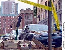 Same again - the wall dropped off this building onto the parked cars below