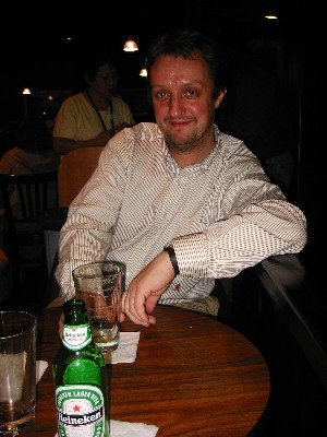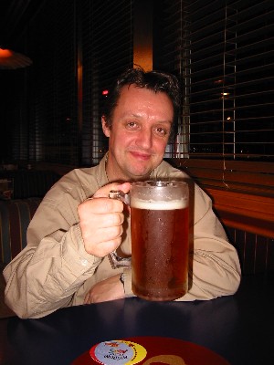 ferry, so we headed straight for the bar. My, that's a BIG beer... |